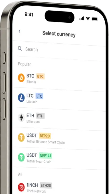 With Switchere, you can buy, sell, swap, send, receive, deposit, store, and securely HODL today’s most popular cryptocurrencies. Supported coins include BTC, ETH, USDT, XRP, USDC, MATIC, STND, TRX, ELK, DOGE, BCH, ADA, LTC, and many more.